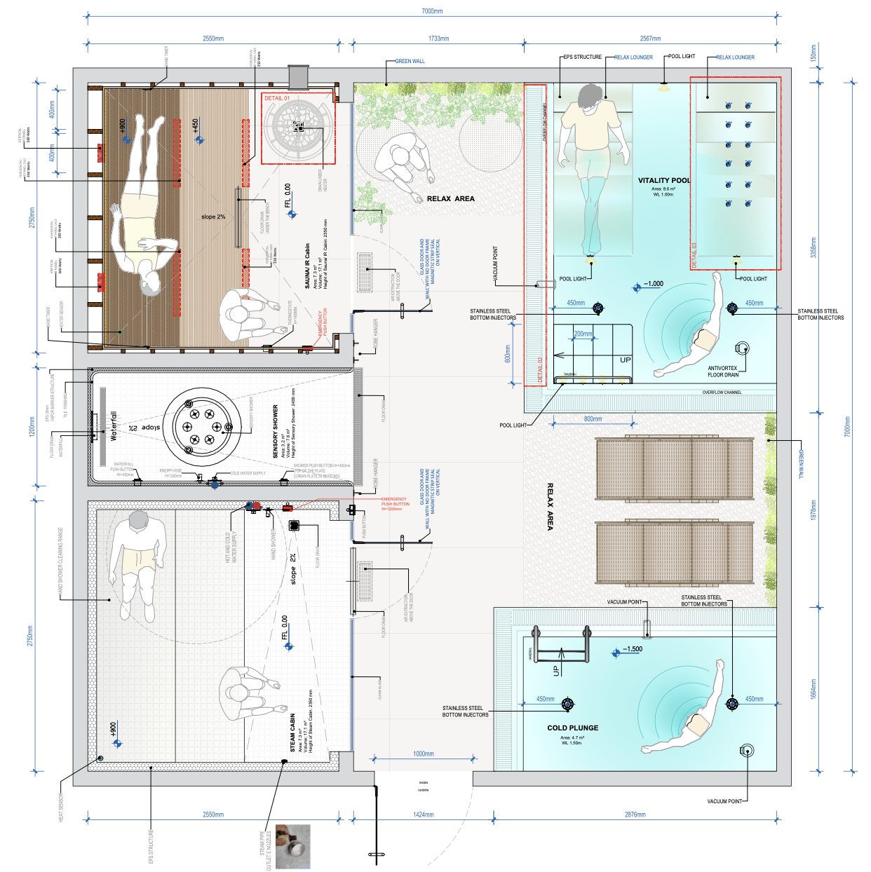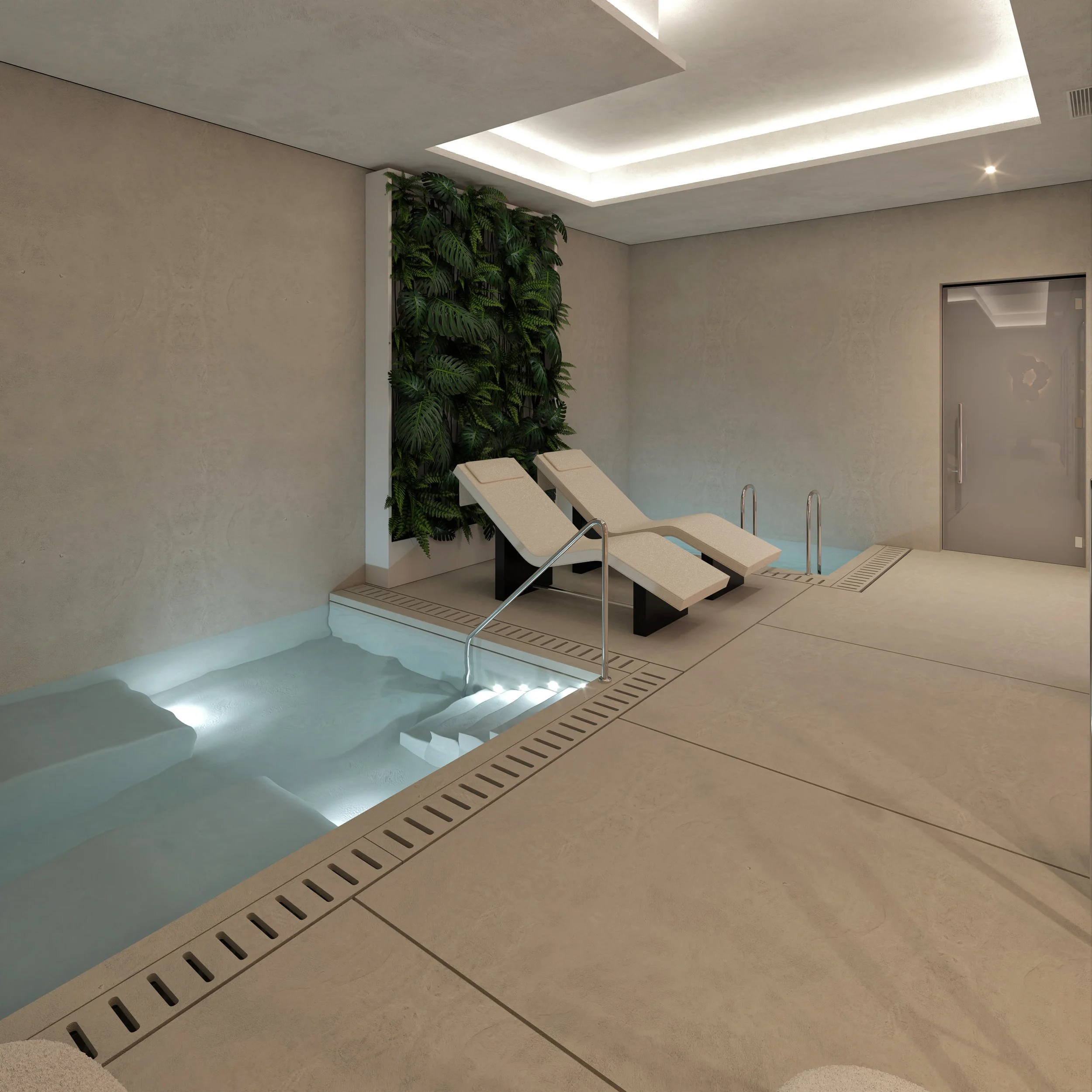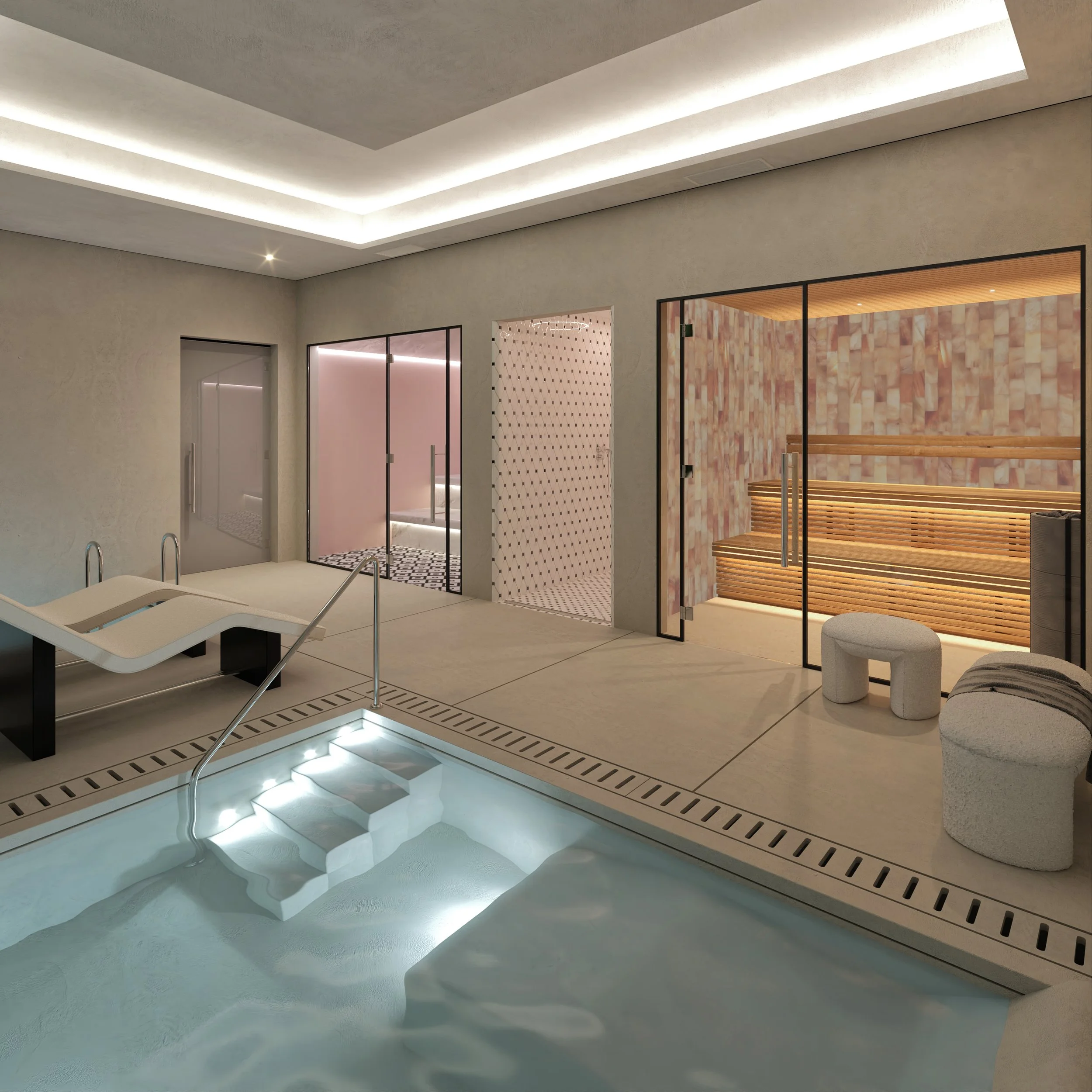 Imagine a large sauna and steam cabin, a sensory shower, a relaxation area, a vitality pool with integrated lounging seats, and even a cold plunge-all designed within a beautifully flowing layout.
